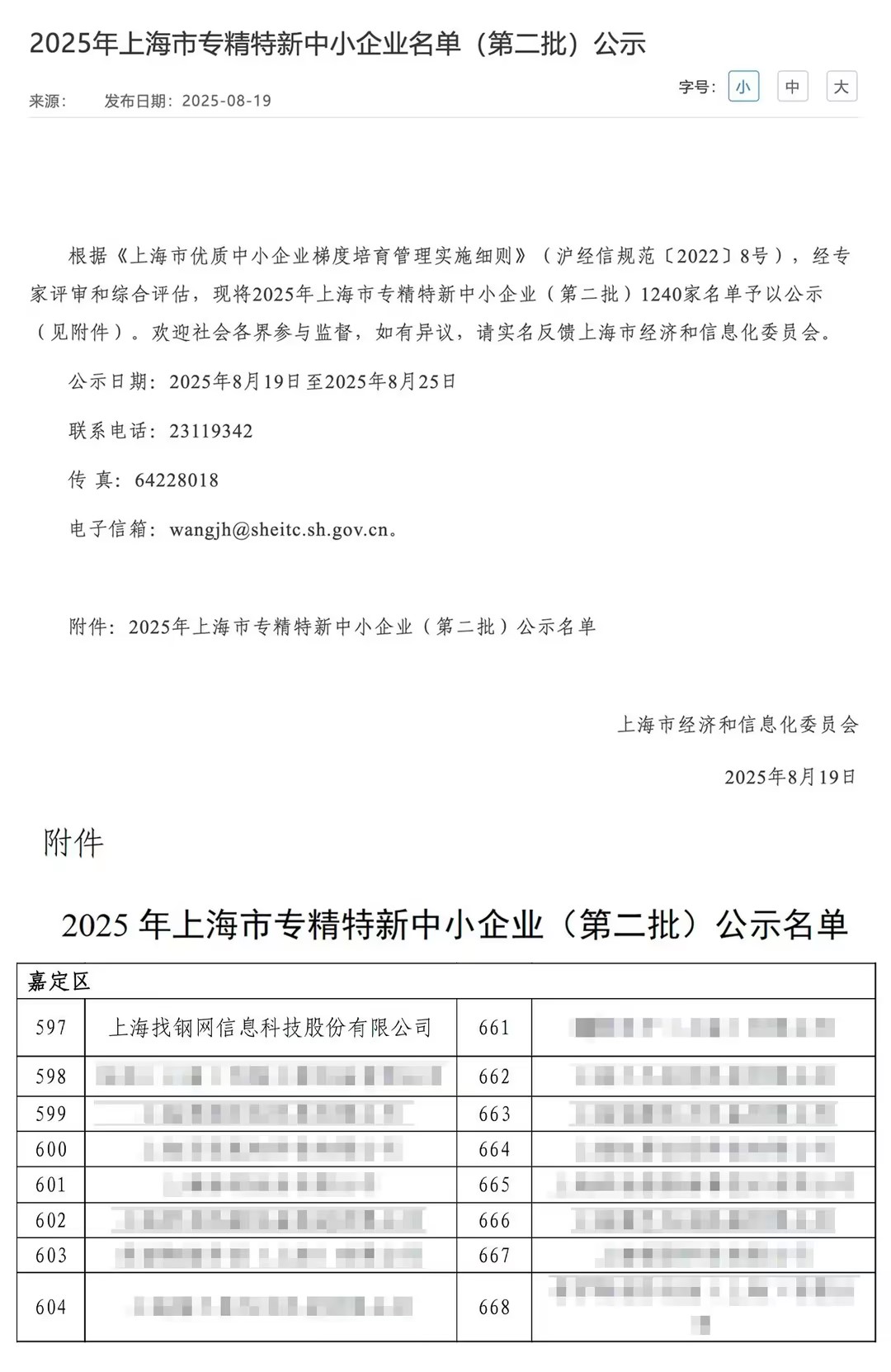 2025.08.28找钢网成功入选2025年上海市专精特新中小企业名单